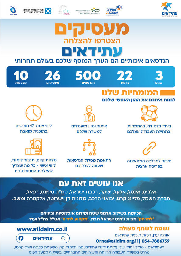 מיזם משותף של עמותת ידידי עתידים - תכנית "עתידים לתעשייה ולמיגזר העסקי", קרן "ביחד" קרן משפחת סטלה ויואל קרסו, מה"ט – המכון הממשלתי להכשרה טכנולוגית במשרד העבודה, הרווחה והשירותים החברתיים ובשיתוף מפעל הפיס.